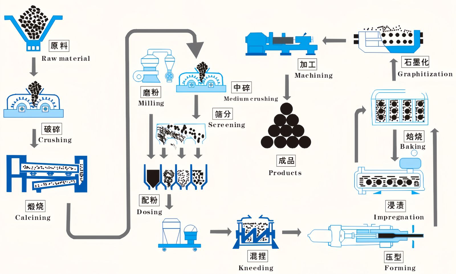 UHP graphite electrode is mainly used for ultra high power electric arc furnaces in steel smelting industry. Its main ingredient is high-value needle coke which is made from either petroleum or coal tar. By working together with our partners, we can provide the complete solution for UHP graphite electrode project include raw coke handling and storage, dosing, mixing, kneading, green electrode pressing, baking & rebaking, impregnatio, graphitization and product finishing and packing.